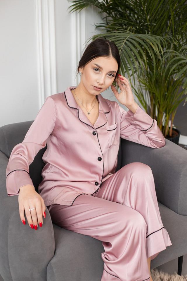 Домашній Коплектіз шовку армані Жіноча піжама сорочка і штани BRAND ЧОРНИЙ