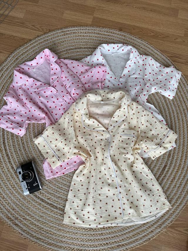 Піжама жіноча МУСЛІН СОРОЧКА І ШОРТИ СЕРЦЯ ЧЕРВОНІ дрібні 3 КОЛЬОРИ