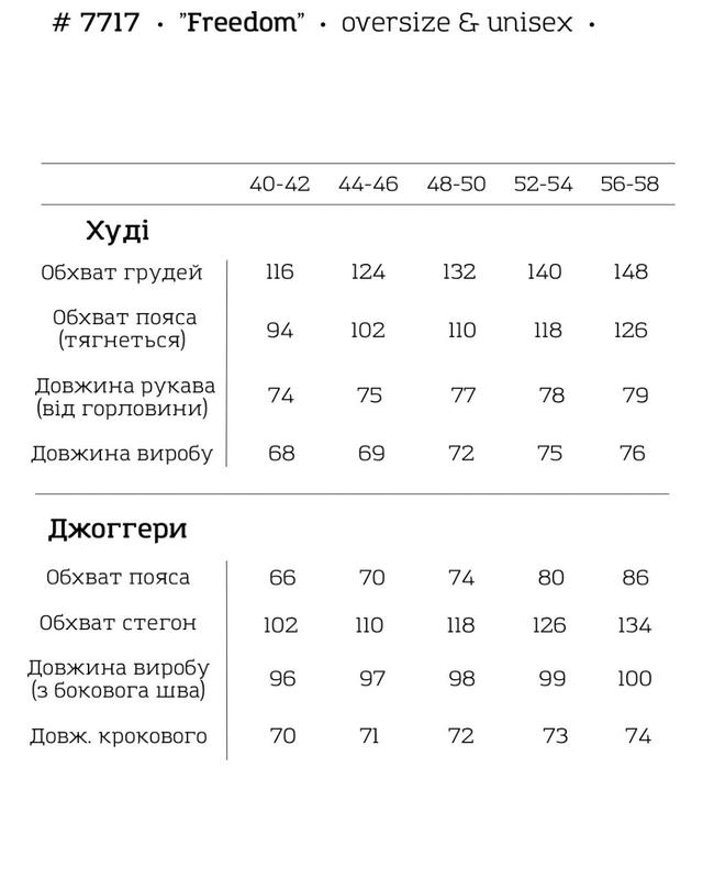 Розміри: 40-42, 44-46, 48-50, 52-54, 56-58 (р.52-58 - ціна вище)