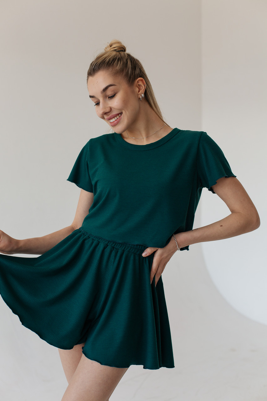 Жіноча піжама з шортами та футболкою-топом РУБЧИК СМАРАГД DC 323/324