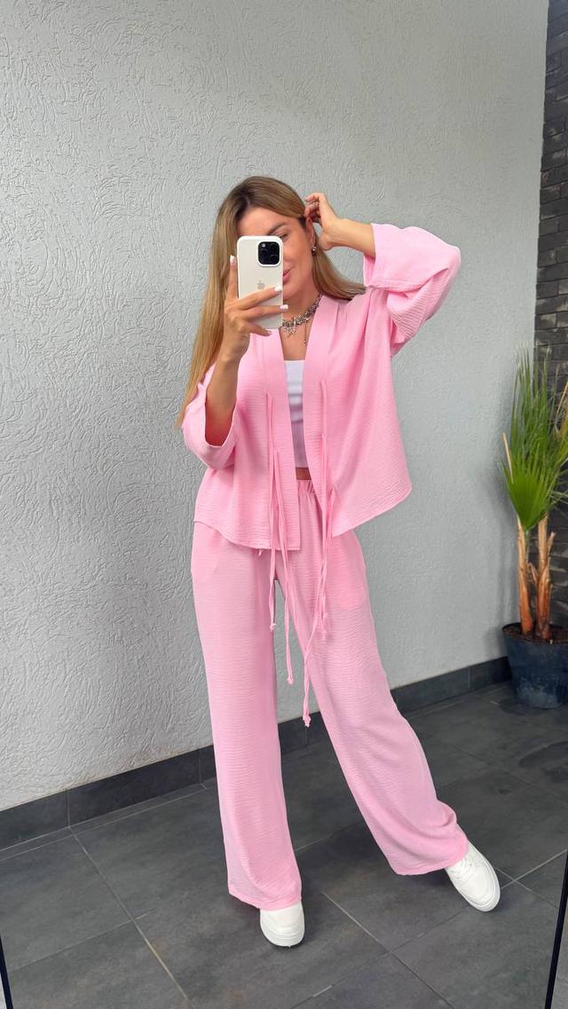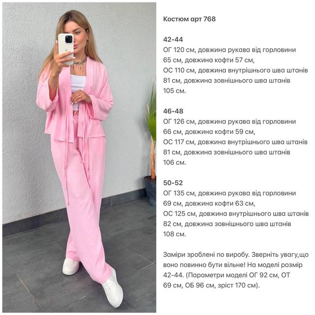 Костюм жіночий ВЕСНА-ЛІТО ЖАТКА 2-ка СОРОЧКА +ШТАНИ РОЖЕВИЙ 768