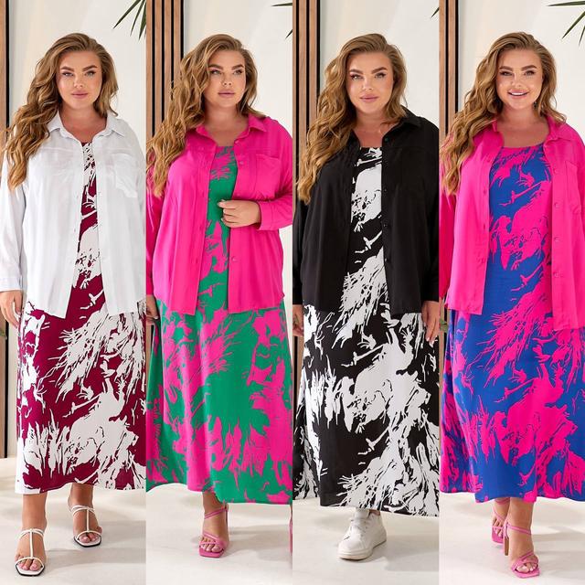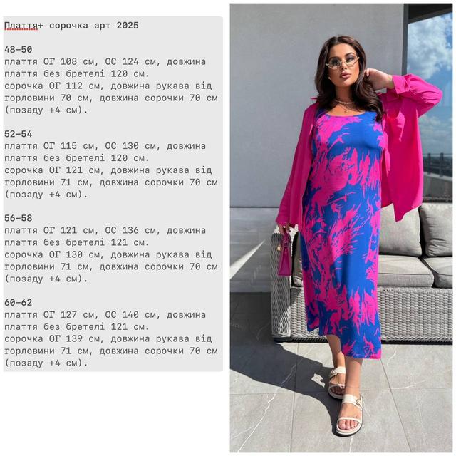 Сарафан БАТАЛ ЛІТНІЙ ШТАПЕЛЬ+СОРОЧКА Комплект р.48-62 Синій з малиновим HARISMA 2025