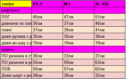 В НАЯВНОСТІ розміри: XS-S, M-L, XL-XXL (заміри випробу вказані в таблиці нижче)